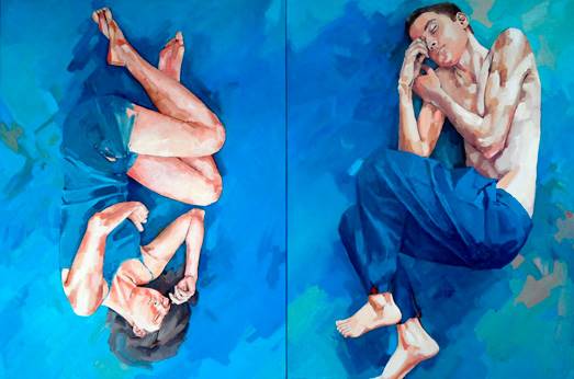 – Dyptyk ten jest połączeniem mojego autoportretu oraz portretu mojego brata bliźniaka – zdradza artystka. – Postaci są tu autentyczne, ich wizerunki potraktowane zostały realistycznie. Tło w tej kompozycji stanowi malowana barwnymi plamami fantastyczna przestrzeń, będąca próbą uchwycenia tego, co uwewnętrznione w człowieku pogrążonym we śnie.