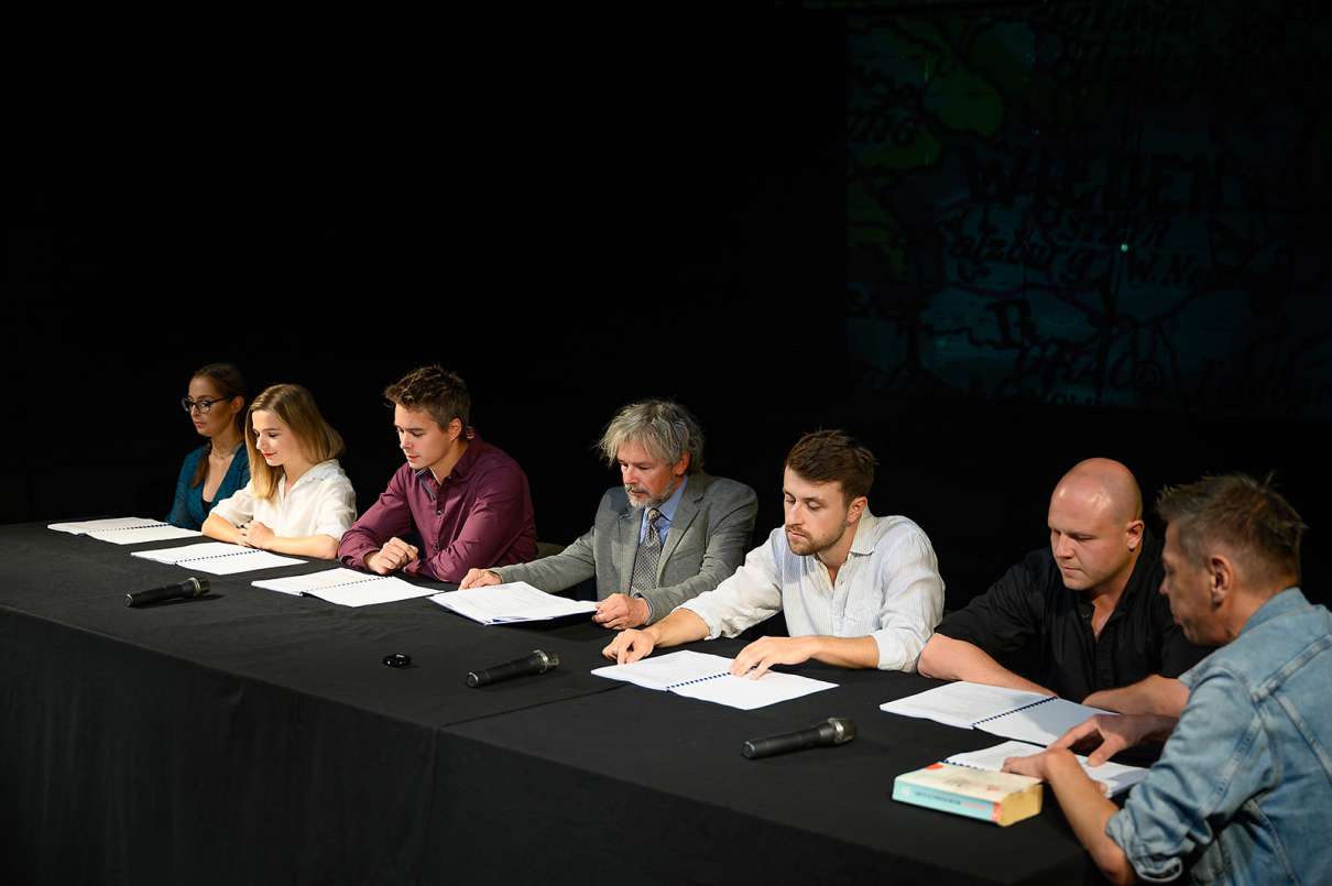Podczas czytania performatywnego widzowie tarnowskiego teatru mieli okazje zobaczyć i usłyszeć całą obsadę spektaklu „Zdarzyło się pierwszego września” Pavla Rankova w reżyserii Tomasza Gawrona: Matyldę Baczyńską, Annę Zachciał, Ireneusza Pastuszaka, Filipa Kowalczyka, Tomasza Wiśniewskiego oraz Adama Hericha z Teatru Miejskiego w Żylinie na Słowacji. Po odczytaniu fragmentów sztuki rozpoczęła się dyskusja z udziałem Tomasza Kašaja, Konsula Generalnego Republiki Słowacji oraz Adriana Kromki, dyrektora Instytutu Słowackiego w Warszawie. Do rozmowy włączyli się również: radna Anna Krakowska; Ewa Łączyńska-Widz, dyrektor BWA w Tarnowie; Adam Bartosz, prezes Komitetu Opieki nad Zabytkami Kultury Żydowskiej oraz Marcin Sobczyk, dyrektor Wydziału Kultury UMT.