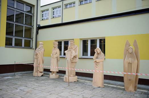 – Przygotowaliśmy drewniane bloki, z których artyści‑amatorzy z Polski wyrzeźbili kilka sylwetek. Powstały, mierzące po 2,5 metra wysokości każda, rzeźby przedstawiające konkretne postaci – to m.in. hetman Jan Tarnowski, brat kurkowy, Chrystus frasobliwy, anioł, wreszcie kapitan żeglugi. Sam plener cieszył się ogromnym zainteresowaniem ze strony naszych uczniów; dzieci chętnie przyglądały się pracy artystów – mówi Bogusław Pituła, dyrektor szkoły.