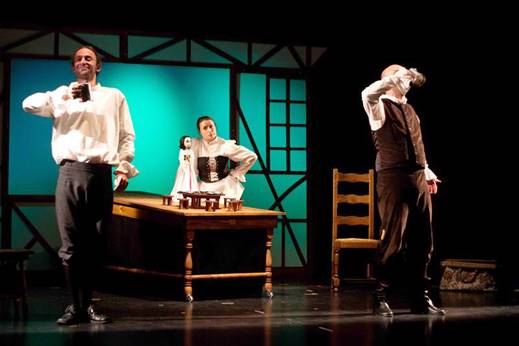 A jednak autor scenariusza i reżyser Oleg Żiugżda wymyślił oryginalną i dowcipną koncepcję prezentacji popularnego tekstu na scenie. Oto słynni bracia pisarze we własnych osobach przyjeżdżają do karczmy „Miła Lisa”. Ponieważ znani są w niej z różnych wybryków i niepłacenia rachunków, gospodyni zamierza wyrzucić ich za próg. Jedynym sposobem udobruchania jej i przeczekania burzy w przytulnym otoczeniu jest opowiedzenie pięknej baśni. Żywy plan aktorski zaczyna się przeplatać od tego momentu z planem lalkowym, a snuta przez wesołych Grimmów opowieść implikuje pojawianie się przed publicznością kolejnych bohaterów. Gdy dodamy do tego zmyślną scenografię z mnóstwem schowków (Larysy Mikiny‑Probodiak), wizualizacje, piękną muzykę (Bogdana Szczepańskiego), a przede wszystkim sporą dawkę humoru, otrzymamy starą historię w nieoczekiwanie świeżym wydaniu.