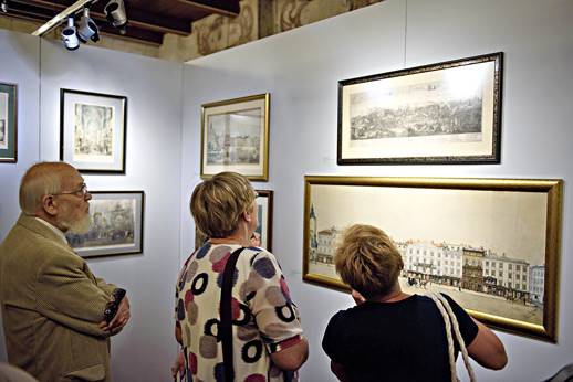 13 prac na ekspozycji to panoramiczne wizerunki Lwowa z różnych okresów historycznych, w tym najstarsze z prezentowanych dzieł – pochodzący z 1618 r. miedzioryt Hogenberga według rysunku Aurelio Passarottiego. Przedstawia miasto otoczone murami obronnymi, z gotycką i renesansową zabudową, nad którą górują kościelne i klasztorne wieże. Uwagę twórczym rozmachem zwraca też nieco młodsza panorama autorstwa Francoisa Perneura z lat 1775 – 1777.