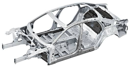 Inteligentna kompozycja materiałów, to również wieżyczki amortyzatorów wykonane z magnezu. W porównaniu z modelem poprzednim mają o 28 procent mniejszą masę. W przypadku zderzenia czołowego generowane wtedy siły są rozprowadzane do trzech buforów uderzenia z przodu pojazdu.