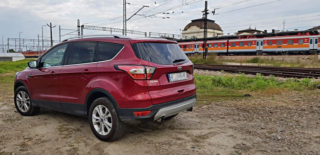 Co do wrażeń z samej jazdy, Kuga powinna zadowolić wszystkich, którzy cenią sobie komfort jazdy i widoczność w każdą stronę. Zawieszenie dzielnie tłumi wszelkie nierówności, ale też delikatnie wychyla się na zakrętach, co sugeruje, że nie jest to pożeracz zakrętów, tylko rodzinny SUV do wygodnego podróżowania. Zawieszenie sprawdzałem na drogach o różnej jakości i ani razu nic dziwnego w jego pracy nie zauważyłem. W związku z tym znalazłem miejsce, gdzie podłoże stanowiły betonowe płyty oraz szyny kolejowe. Po kilku kółkach na takiej nawierzchni mogę spokojnie stwierdzić, że komfort to był główny cel osoby projektującej zawieszenie. Jest dobrze i dość cicho. Doskonałe są również hamulce Kugi, które dość dobrze radzą sobie z masą auta, choć bywają odrobinę za głośne. Miałem wrażenie, że słyszę tarcie klocków o tarcze. W tym miejscu zaznaczam, że testowany egzemplarz nie jest autem nowym i ma przebieg powyżej 20 tys. kilometrów, a więc klocki i tarcze nowe nie były również.