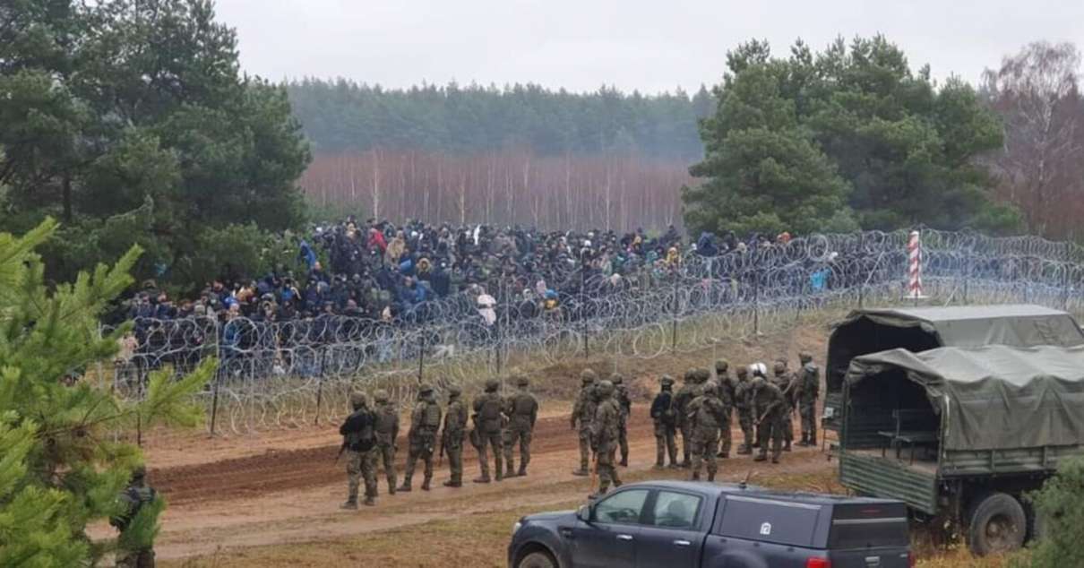 Migranci przekroczyli przejście graniczne w Kuźnicy po stronie Białorusi. Zostali zatrzymani przez Wojsko Polskie, Straż Graniczną i Policję. Grupa rozpoczęła marsz wzdłuż ogrodzenia. pic.twitter.com/ulzDJfOf7g