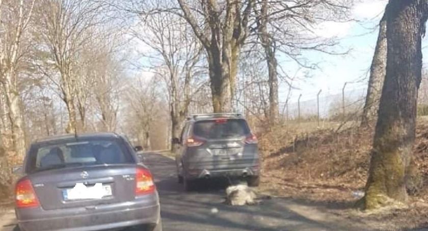 W czwartek, 1 kwietnia, w godzinach popołudniowych, kierowcy poruszający się jedną z dróg w powiecie kościerzyńskim dostrzegli szybko jadący samochód z przywiązanym do tylnego zderzaka psem. Jednemu z kierowców udało się zarejestrować zdarzenie, a nagranie przyczyniło się do zatrzymania Waldemara B., byłego senatora Prawa i Sprawiedliwości.