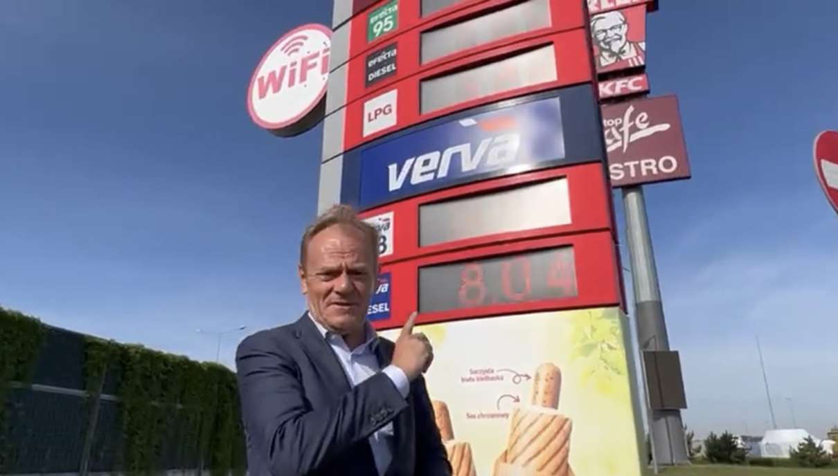 Następnie przeszedł na drugą stronę pylonu, która przedstawia aktualne ceny paliw. – Nie wiem, czy wyraźnie widać, ale podpowiem: 8 zł 7 gr – dziewięćdziesiątka piątka (litr benzyny PB95). Teraz już wiecie, dlaczego zdjęcia robili z tamtej strony. Ale prawdy nie przykryją. Za taką cenę Kaczyński nie najeździ się po Polsce – powiedział Tusk.