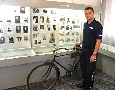 W Policyjnej Izbie Tradycji stoi też przedwojenny rower policyjny przekazany przez starszego sierżanta Zygmunta Sokołowskiego, syna tarnowskiego policjanta granatowego.