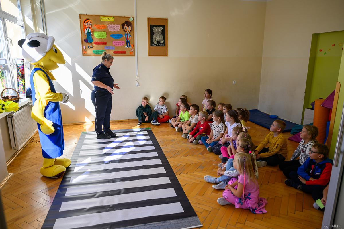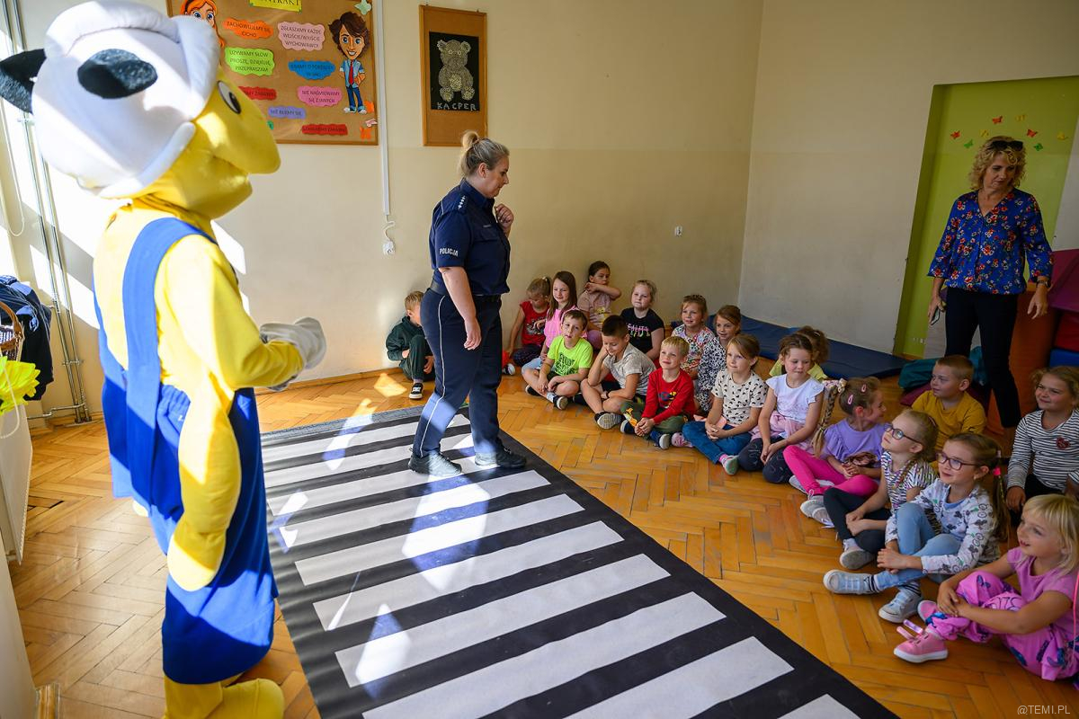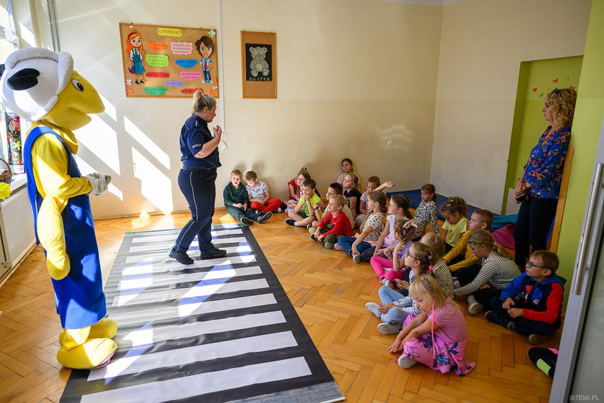 Od kilkunastu dni policjanci z Komendy Miejskiej Policji w Tarnowie w towarzystwie wielkiej maskotki – Mrówki Tarnów i Zakliczyn odwiedzają kolejne szkoły, przypominając dzieciom o bezpieczeństwie na drogach.