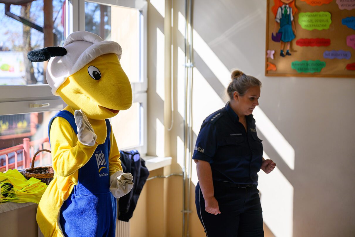 Tarnowscy policjanci z pluszową Mrówką codziennie – od poniedziałku do piątku pojawiają się w placówkach oświatowych.
