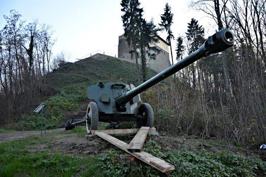 Na wzgórzu obok baszty, która jest pozostałością po XIV-wiecznym zamku, powstała wieża bramna, odbudowano istniejące tam piwnice i wzniesiono zwodzony most. Prowadzi tam nowo powstała ścieżka, wzdłuż której powstał militarny szlak – ustawiono tam kilkadziesiąt wojennych maszyn. Onager, plutej, hak niszczycielski, kusze wałowe, dźwig do oblewania smołą, drabiny szturmowe, taran, trebusz, perriere, XV-wieczna hufnica na lawecie i wineja – to średniowieczne urządzenia, przy pomocy których zdobywano zamki i warownie. Dla tych, którzy interesują się historią i militariami, zobaczenie ich stanowić będzie nie lada gratkę, tym bardziej że na umieszczonych obok tabliczkach przeczytać można wiele ciekawostek związanych z ich powstaniem i przeznaczeniem. Z czasów nowszych pochodzą moździerz regimentowy, armata oblężnicza na lawecie czy XVII-wieczny falkonet. Na szlaku II wojny światowej zamontowano CKM-y, polową kuchnię, działa przeciwlotnicze i dywizyjną armatę. – Wybierając militaria, zadbaliśmy o każdy najdrobniejszy detal, repliki znajdujące się na szlaku wyglądem nie odbiegają od oryginałów. Dla turystów przygotowaliśmy ścieżki rekreacyjne, przy których stoją ławki i altany, są także miejsca parkingowe – chwali się burmistrz Chudoba.