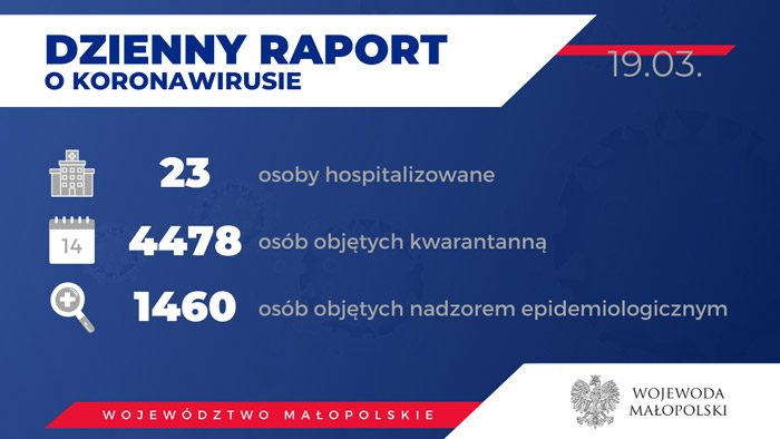 Aktualnie w Małopolsce zakażenie koronawirusem zostało potwierdzone u 20 osób.