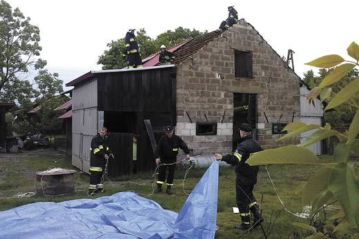 Przez wiele godzin strażacy wypompowywali wodę z piwnic i pomagali zabezpieczać dachy specjalną folią, którą kupił poszkodowanym urząd miejski. Straty są ogromne, w niektórych gospodarstwach sięgają wielu tysięcy złotych.