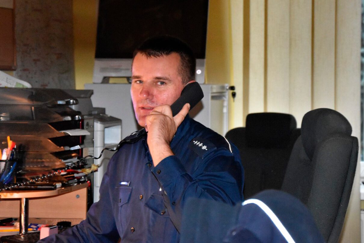W ubiegły piątek (11 listopada) ok. godz. 20.30 asp. sztab. Roman Mól, który pełnił wówczas służbę nocną jako oficer dyżurny, odebrał zgłoszenie o pozostającej w przydrożnym rowie w miejscowości Dąbrówka (gm. Rzezawa) rozbitej skodzie, w której nie było kierowcy ani pasażerów. Oficer natychmiast skierował na miejsce policjantów, aby odszukali osoby poszkodowane w wypadku. Około godz. 22 pracownicy Centrum Powiadamiania Ratunkowego odebrali telefon od mężczyzny, który powiedział, że jest ranny i chce popełnić samobójstwo, nie podał jednak żadnych szczegółów. Zgłoszenie przekazano bocheńskim policjantom, którzy powiązali telefon z wypadkiem w Dąbrówce. Roman Mól po kilku próbach skontaktował się ostatecznie z kierowcą skody, którym okazał się 37-letni mieszkaniec powiatu dąbrowskiego. Policjant ustalił miejsce jego pobytu i skierował tam pomoc. Jak się okazało, mężczyzna przebywał w pobliskim lesie i miał uraz głowy. Został przekazany pod opiekę ratowników medycznych, a następnie lekarzy.