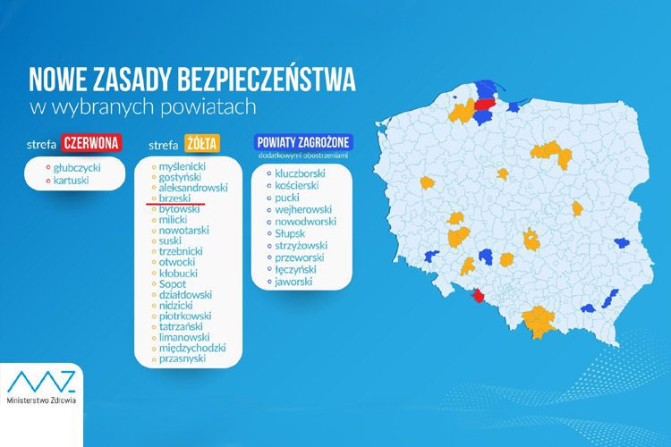 Ministerstwo Zdrowia przedstawiło nowe powiaty, które wprowadzono do stref z dodatkowymi obostrzeniami. Do strefy żółtej trafił m.in. powiat brzeski.