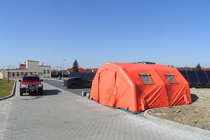 Rozstawienie polowej izby przyjęć przy Zespole Opieki Zdrowotnej w Dąbrowie Tarnowskiej było możliwe dzięki zaangażowaniu strażaków z Państwowej Straży Pożarnej w Dąbrowie Tarnowskiej. Rozłożony na początku tego tygodnia namiot pneumatyczny ma na celu zapobiec sytuacji, w której osoby mające kontakt z chorym zarażonym COVID-19 lub z objawami tej choroby, wejdą bezpośrednio na Szpitalny Oddział Ratunkowy.
