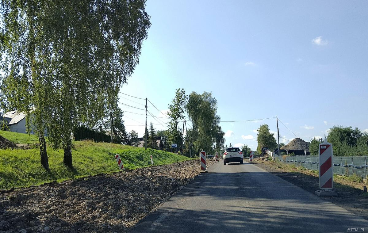 Działania drogowców skupiają się na zabezpieczeniu osuwiska i modernizacji jezdni. Na granicy Nowodworza i Poręby Radlnej od kilku miesięcy obowiązuje ruch wahadłowy. Wprowadzone rozwiązanie – zwłaszcza w godzinach porannego i popołudniowego szczytu komunikacyjnego – generuje długie korki. Zastosowanie sygnalizacji świetlnej było jednak konieczne dla zapewnienia bezpieczeństwa na placu budowy.