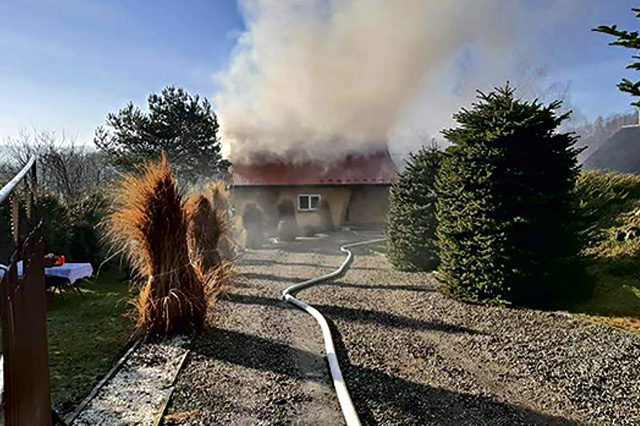 Oczom strażaków, którzy jako pierwsi pojawili się na miejscu zdarzenia, ukazały się sporych rozmiarów płomienie, obejmujące poddasze domu. Ogień przedostał się na parter. Trzyosobowa rodzina, która zajmowała dom, opuściła go o własnych siłach tuż po wybuchu pożaru.