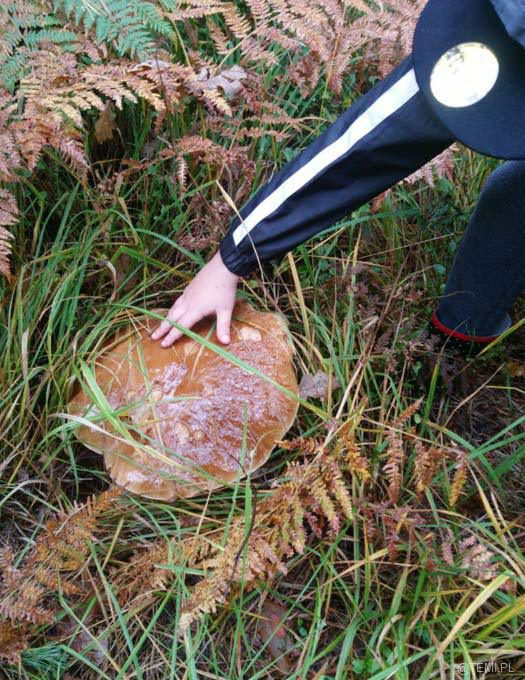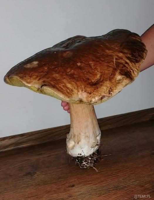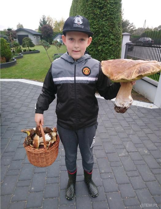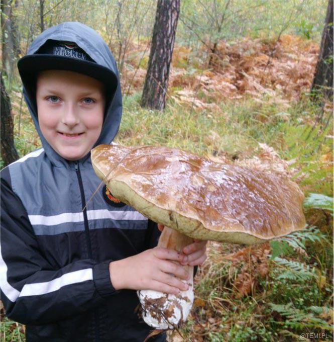 – W niedzielne popołudnie wybraliśmy się na rodzinne grzybobranie do lasu w Łętowicach. Nasz dziesięcioletni syn Tymoteusz znalazł nie lada okaz – wielkich rozmiarów prawdziwka o wadze 1,76 kg, u którego średnica kapelusza wynosiła 36 cm. Syn był bardzo rozemocjonowany takim znaleziskiem, a mijani przez nas grzybiarze z podziwem patrzyli na niesiony przez niego okaz. Po powrocie do domu dziadek Tymka, 70-letni pasjonat grzybobrań, stwierdził, że przez całe swoje długie życie nie miał okazji ujrzeć grzyba takich rozmiarów. Zupa grzybowa smakowała wybornie – mówią z dumą rodzice chłopca.