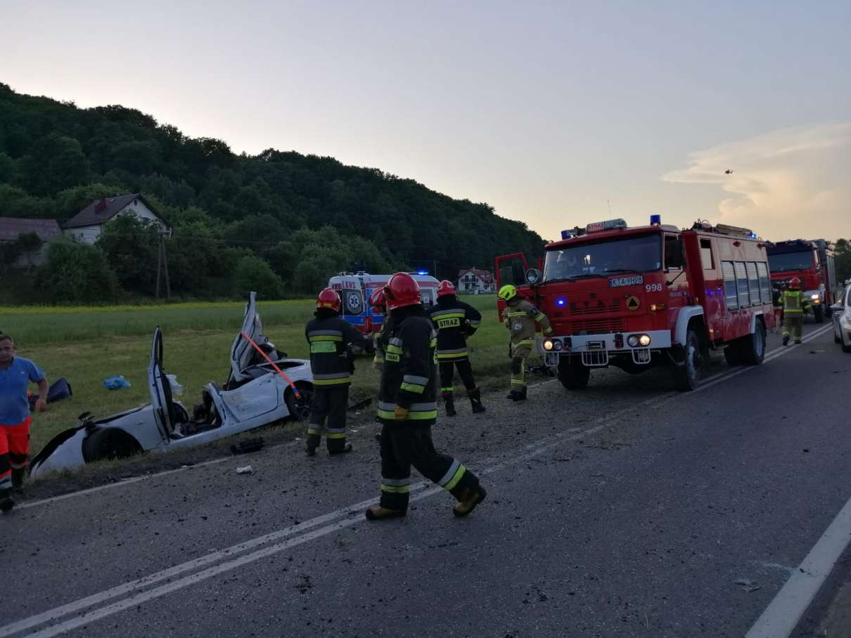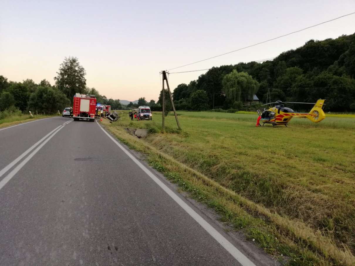 Kierowca z Nowego Sącza stracił panowanie na zakręcie, a samochód w którym przebywało pięć osób, wypadł z drogi i zaklinował się w przydrożnym rowie melioracyjnym. Interweniujący strażacy musieli wyciąć metalowe elementy konstrukcyjne samochodu, by wydostać z niego ludzi. Ratownicy medyczni, którzy przebywali na miejscu, zadecydowali o wezwaniu śmigłowca Lotniczego Pogotowia Ratunkowego, do najbardziej poszkodowanej osoby. Mężczyzna z urazem kończyn dolnych trafił do krakowskiego szpitala. Pozostałe osoby przewieziono do szpitali w Nowym Sączu i Brzesku.