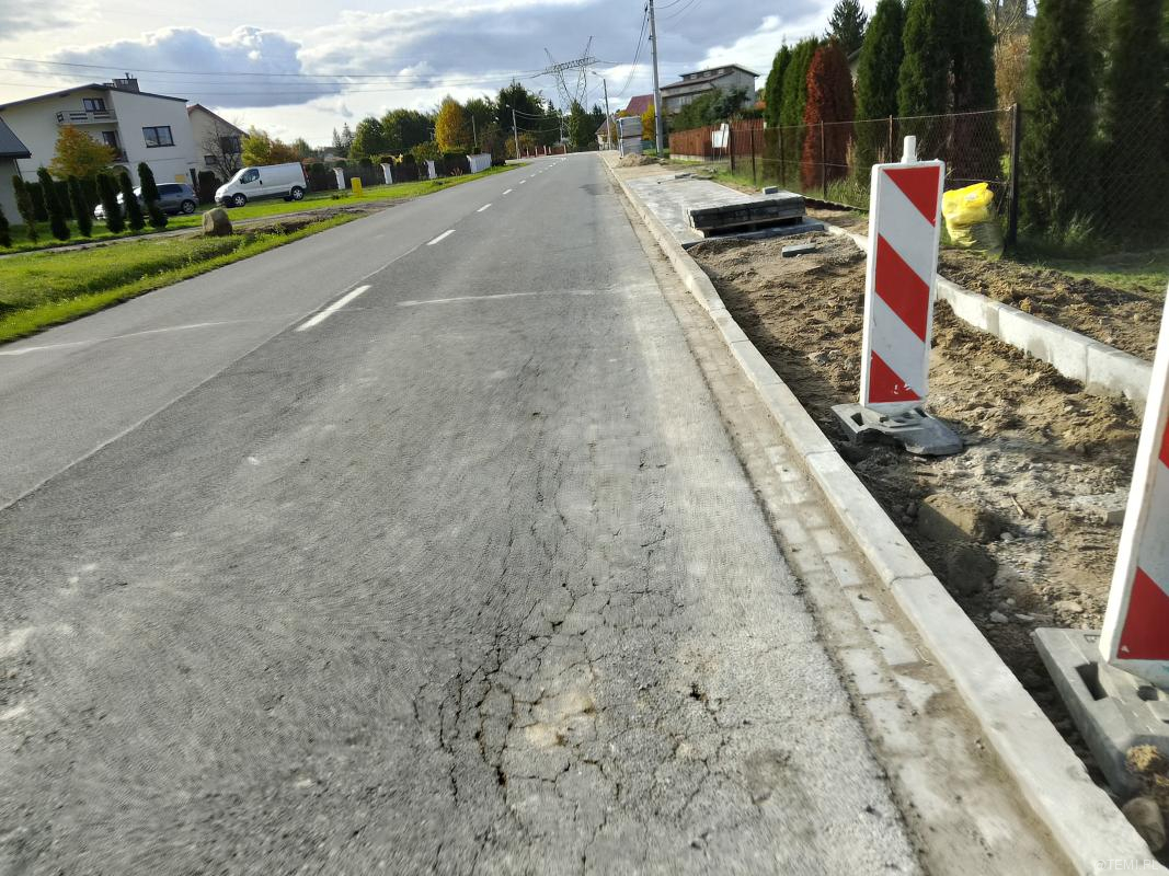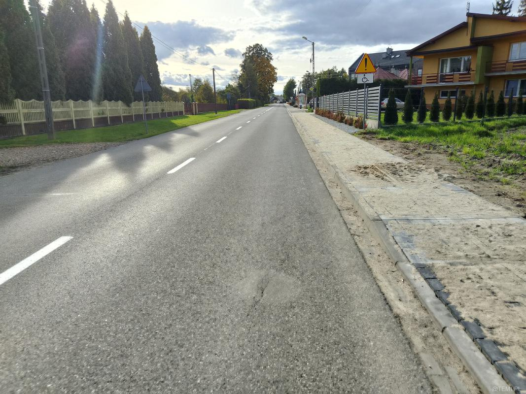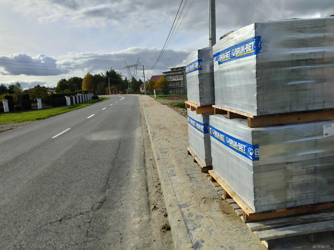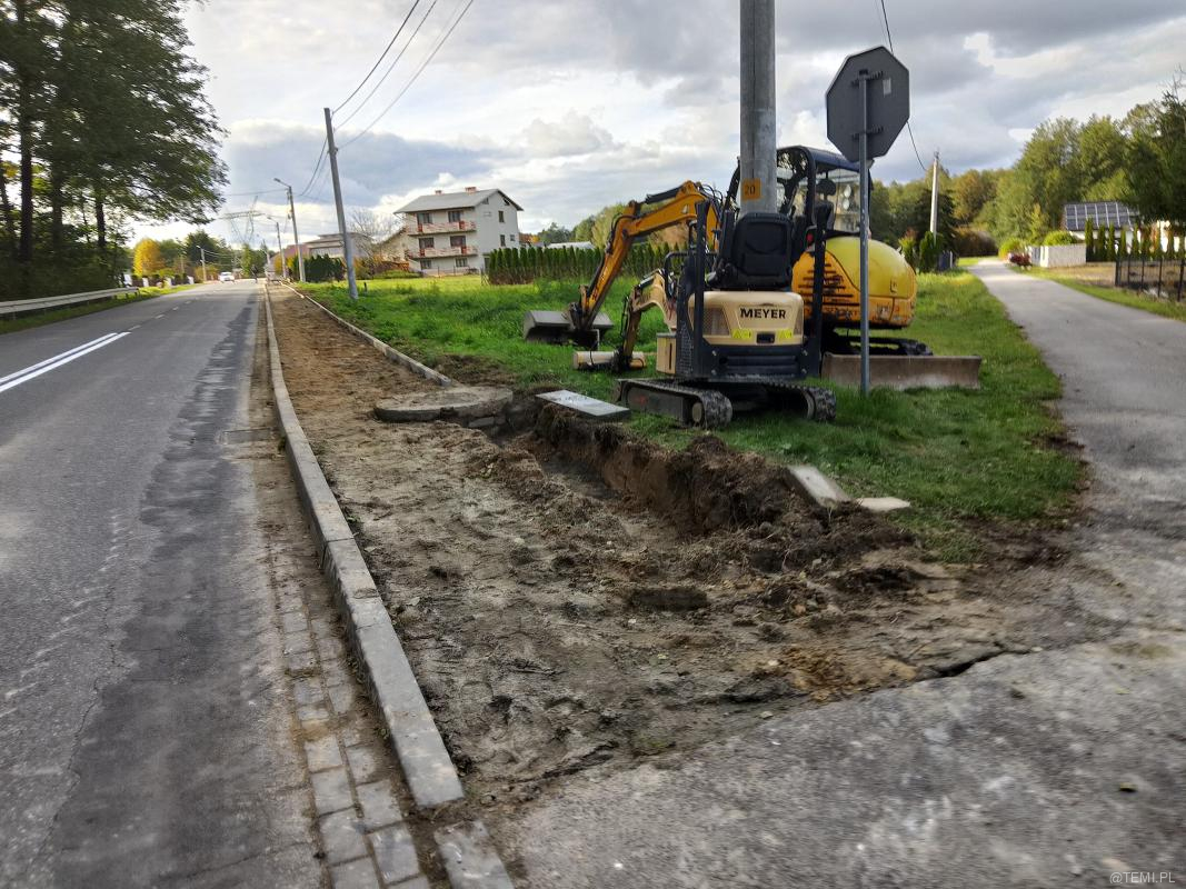 Od kilku tygodni trwa wymiana starych płyt i likwidacja ubytków wzdłuż traktu dla pieszych wytyczonego obok drogi powiatowej 1371K. Obecnie pracami objęty jest ostatni, kilkusetmetrowy odcinek chodnika między Tarnowskimi Zakładami Osprzętu Elektrycznego a Jodłówką-Wałkami.