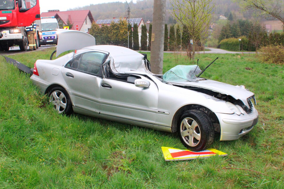Z kolei na drodze wojewódzkiej nr 980 w Golance koło Gromnika 19-letni kierowca samochodu osobowego mercedes nagle stracił panowanie nad pojazdem, zjechał z szosy, dachował i na końcu uderzył w słup. Strażacy wykorzystali specjalistyczny sprzęt, aby mężczyznę uwolnić z rozbitego samochodu. Rannego w stanie ciężkim przetransportowano do szpitala.