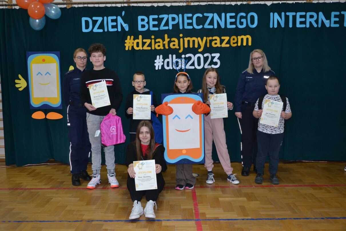 Jedną z atrakcji szkolnego Dnia Bezpiecznego Internetu w Niwce były również konkursy – plastyczny dla klas I-III oraz konkurs na wykonanie lapbooka – dla uczniów starszych klas. Uczestnicy obu konkursów podeszli do tematu ambitnie i z dużym zaangażowaniem, przez co powstały niezwykle ciekawe i kreatywne prace. Laureaci konkursów odebrali z rąk dyrekcji szkoły oraz policjantek dyplomy oraz nagrody. Warto podkreślić, że policjantkom tak bardzo spodobały się prace uczniów, że od teraz będą wykorzystywać je podczas zajęć profilaktycznych z przedszkolakami.