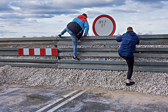 Piesi mimo zakazu skracają sobie drogę na drugą stronę Dunajca | fot. Tadeusz Koniarz