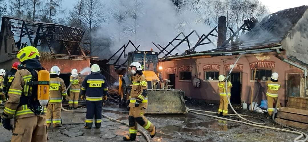 Ogień pojawił się na budynku stajni i przedostał się na stodołę. Jak informowali strażacy, z uwagi na szybkie rozprzestrzenianie się ognia, zagrożony był również dom mieszkalny.