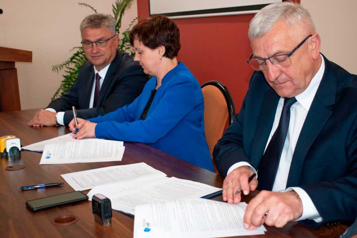 Burmistrz Ciężkowic Stanisław Kuropatwa, skarbnik gminy Dorota Popiela oraz przedstawiciele wykonawcy podpisali umowę na wykonanie stacji uzdatniania wody w Ciężkowicach.