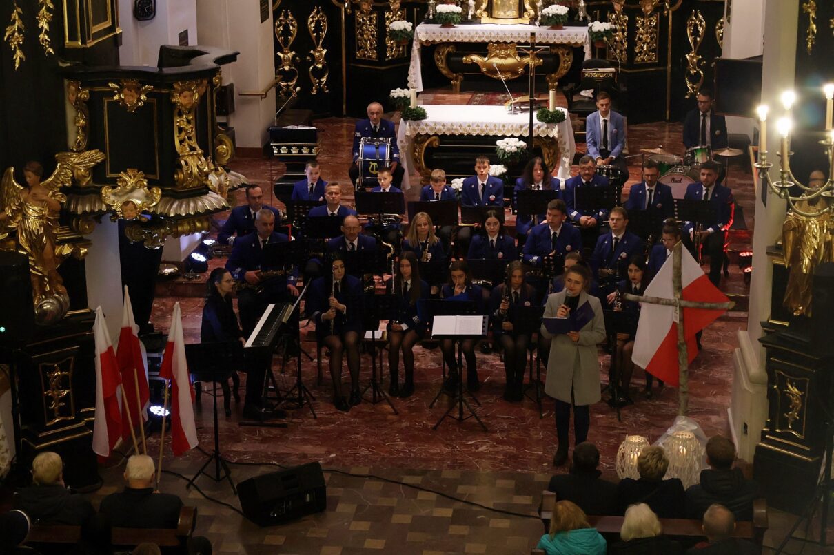 Koncert orkiestry wypełnił wnętrze świątyni wzniosłymi melodiami. Dobrany repertuar oddawał ducha polskiego patriotyzmu i różnorodne emocje – od dumy i determinacji po nostalgię i miłość. W patriotycznym repertuarze Sanktuaryjnej Orkiestry Dętej znalazły się: Rota, Przybyli ułani, Rozkwitały pąki białych róż, Jak to na wojence ładnie, O mój rozmarynie, Wojenko, wojenko, Pierwsza kadrowa, Szara Piechota i Marsz Pierwszej Brygady. O historii utworów opowiadała występująca w roli konferansjera – Natalia Baran.