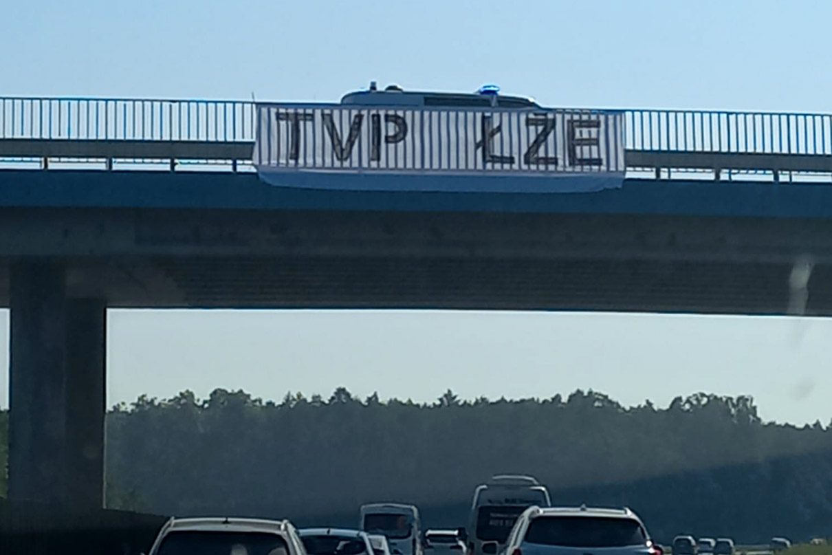 Zmotoryzowani podróżujący dzisiaj (9 września) autostradą A4 w kierunku Tarnowa na jednym z wiaduktów dostrzec mogli baner z napisem „TVP ŁŻE”.