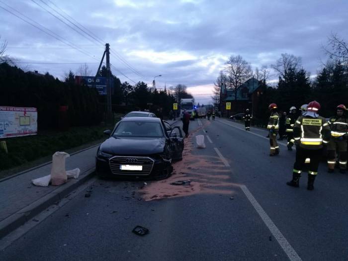W zdarzeniu ucierpiały trzy osoby. Do szpitala trafiła kobieta, która kierowała audi oraz dwie osoby z busa.
