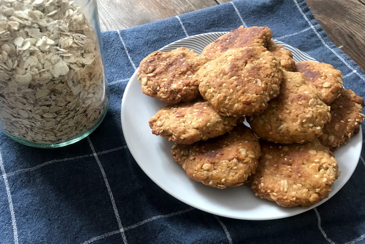 Piekarnik rozgrzewamy do 170 stopni C. W dużej misce dokładnie mieszamy wszystkie sypkie składniki poza płatkami, następnie dodajemy płatki. Do małej miski wlewamy olej, dodajemy cukier oraz purée dyniowe. Wlewamy mokre składniki do suchych i dokładnie mieszamy. Na koniec wsypujemy bakalie, orzechy. Blachę wykładamy papierem do pieczenia. Przy pomocy gałkownicy do lodów nakładamy porcje ciasta, następnie lekko spłaszczamy łyżką. Pieczemy przez 17-20 minut, po czym wyjmujemy i wstawiamy pozostałą partię ciastek. Możemy je przechowywać nawet ponad tydzień w szczelnym słoiku.