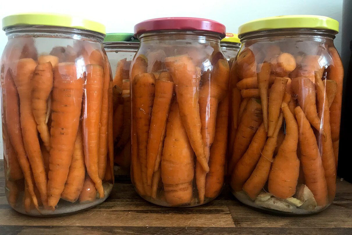 Napełnić słoik solanką. Marchew musi być całkowicie zalana solanką! Zamknąć szczelnie słoiki pokrywką. Pozostawić marchewki do fermentacji w temperaturze pokojowej na 2 tygodnie. Temperatura w pomieszczeniu nie powinna być wyższa niż 25 st. C, a nawet lepiej – nie wyższa niż 22 stopnie.