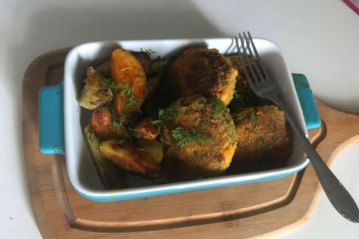 Odcedzamy ciecierzycę z zalewy. Cebulkę obieramy, kroimy drobno. Marchewkę ścieramy na tarce na grubych oczkach, a czosnek przeciskamy przez praskę. Na oleju podsmażamy cebulkę. Po chwili dorzucamy czosnek oraz marchewkę i chwilę podsmażamy. Ciecierzycę wrzucamy do miski wraz z podsmażonymi warzywami i blendujemy. Na końcu doprawiamy. Formujemy kotlety i obtaczamy w roztrzepanym jajku i bułce. Smażymy jak tradycyjne kotlety.