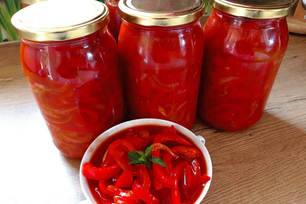 Paprykę oczyścić i pokroić w podłużne paski. Cebulę pokroić w krążki. Zagotować zalewę z podanych składników i dodać pokrojoną paprykę oraz cebulę. Gotować ok. 8 minut, ciągle mieszając. Doprawić do smaku. Przełożyć do słoików, zakręcić i pasteryzować przez ok. 10 min.