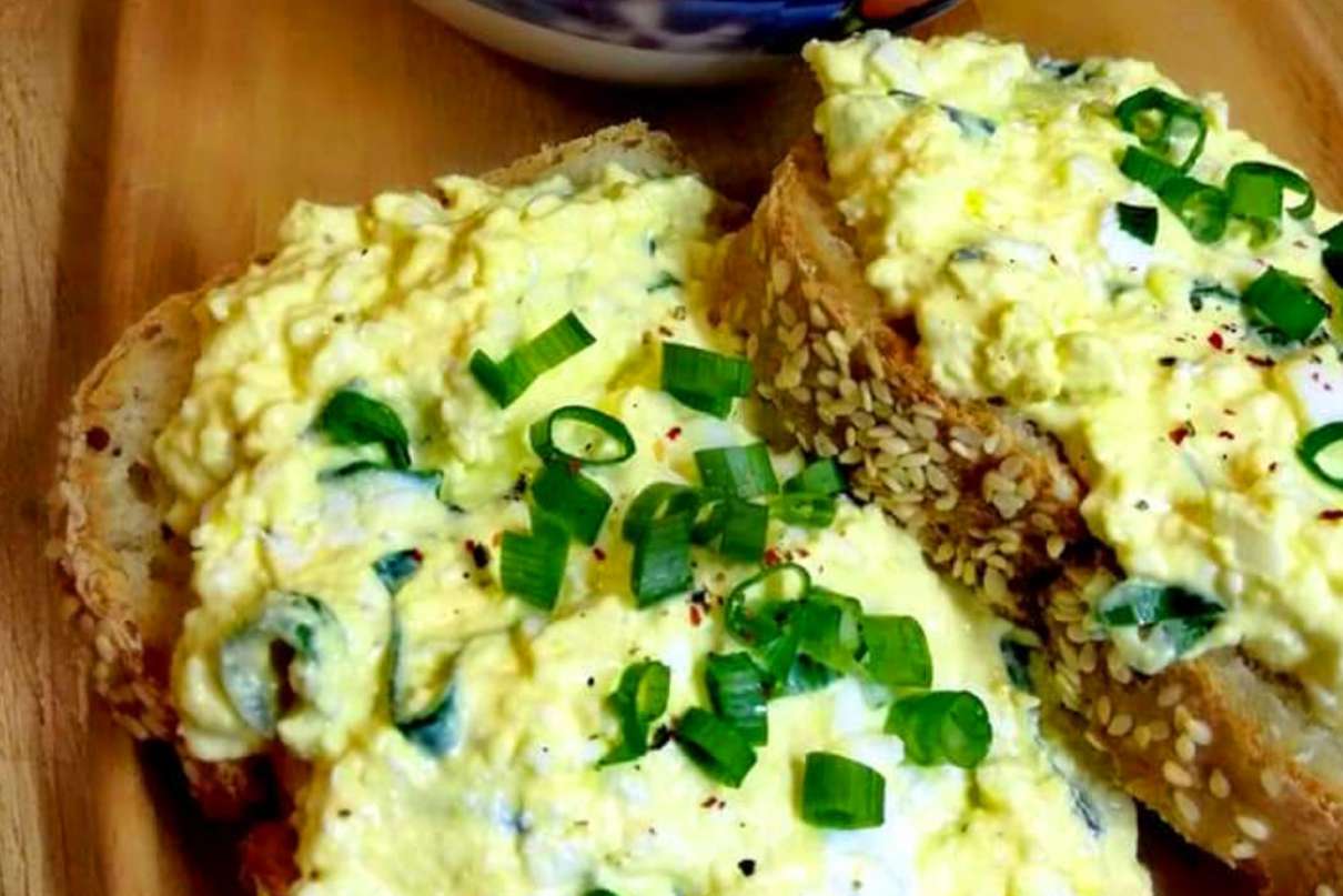 Jajka ugotować na twardo, obrać, jeszcze ciepłe rozgnieść widelcem w misce razem z masłem. Dodać rozgnieciony widelcem ser feta. Dosypać pokrojony drobno szczypiorek. Doprawić pieprzem. Nie solić, bo słony smak uzyskamy dzięki dodaniu serka feta.