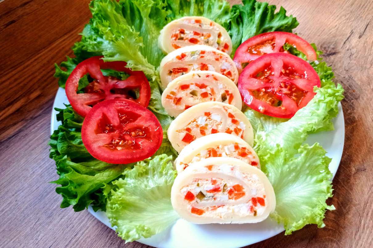 Schłodzoną roladę kroić w plasterki. Nadzienie można podawać także jako pastę do pieczywa.