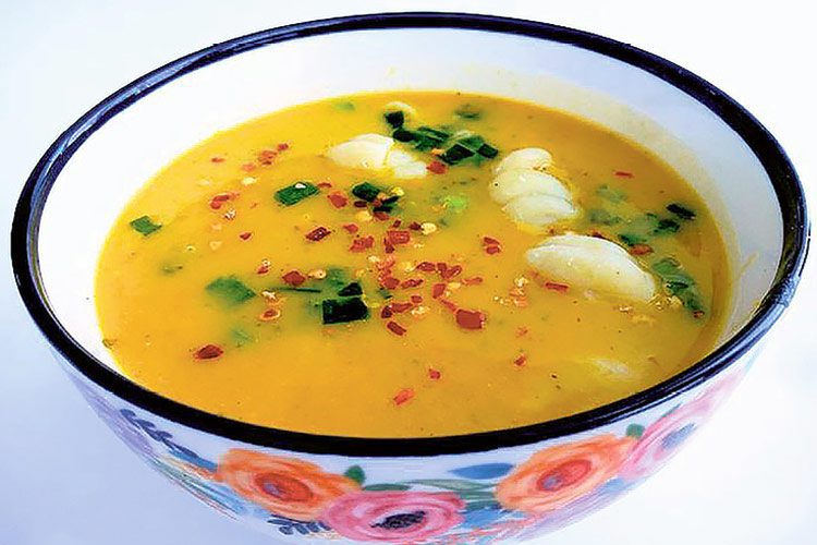Zagotować wodę z żeberkami, standardowymi przyprawami, ziemniakami i marchewką. Na patelni roztopić masło, dorzucić sprasowany czosnek i gdy się zrumieni dorzucić ogórki, aby one też nabrały rumieńców, dorzucić też cukinię i paprykę. Kiedy już nabierze aromatu i puści delikatnie soki dorzucić do zupy. Pogotować wszystko razem 15 minut. Zblendować/Zmiksować wszystko razem z serkiem topionym, doprawić śmietanką rozkłóconą z mąką, majerankiem, curry, ostrą i słodką papryką. Przed podaniem można posypać płatkami chili i szczypiorkiem… Podawałam z makaronem muszelki.
