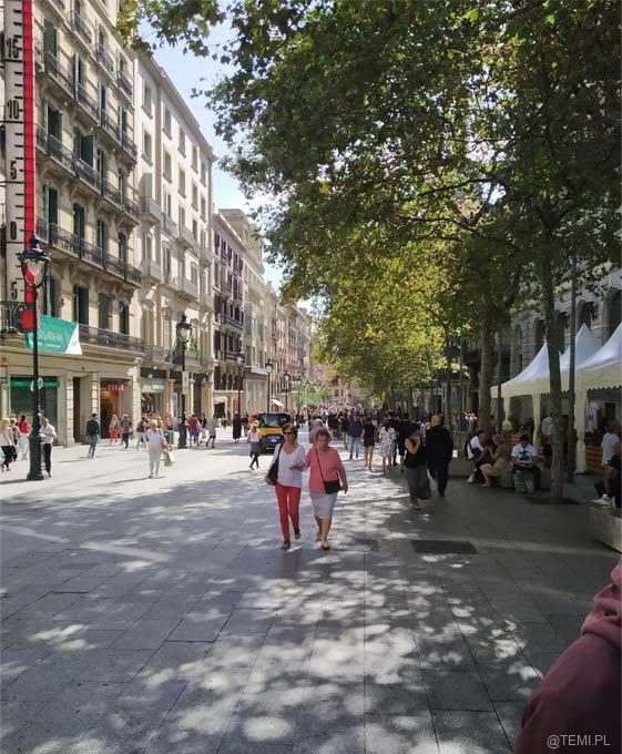 O tej porze, w samo południe, ruch jest znaczny, tworzą się zatory, często odzywają się klaksony, a z co chwilę podjeżdżających autobusów hotelowych i ośrodków wysypują się liczne grupy chętnych do zwiedzania miasta. Zatrzymują się też tutaj autobusy linii miejskich. Kocioł – pierwsza klasa. Parę kroków i jesteśmy przy wejściu na główną promenadę miasta, La Rambla. Postanawiamy wrócić tu na ostatni autobus o 18.45.