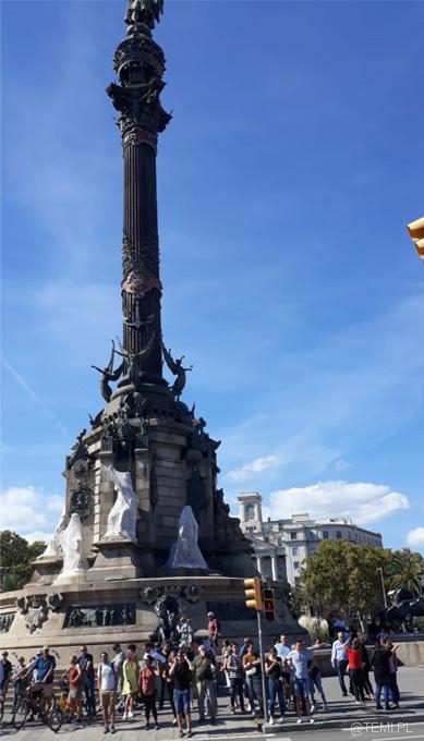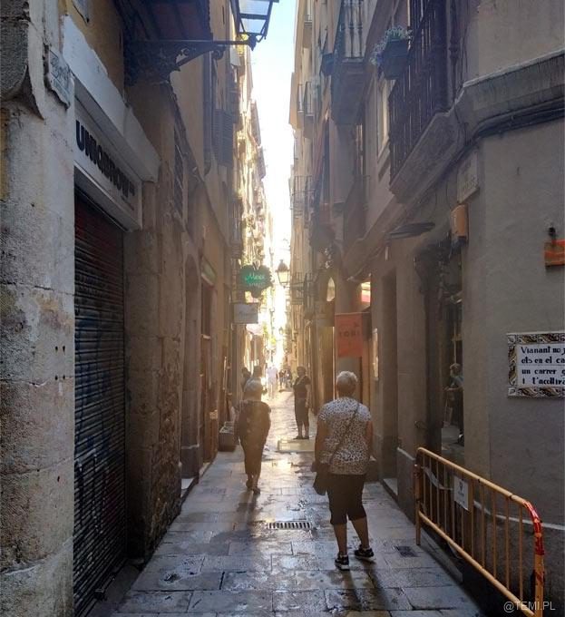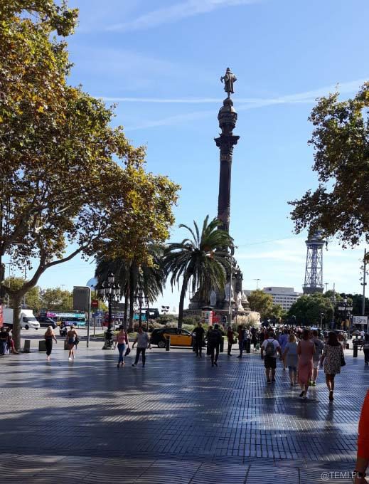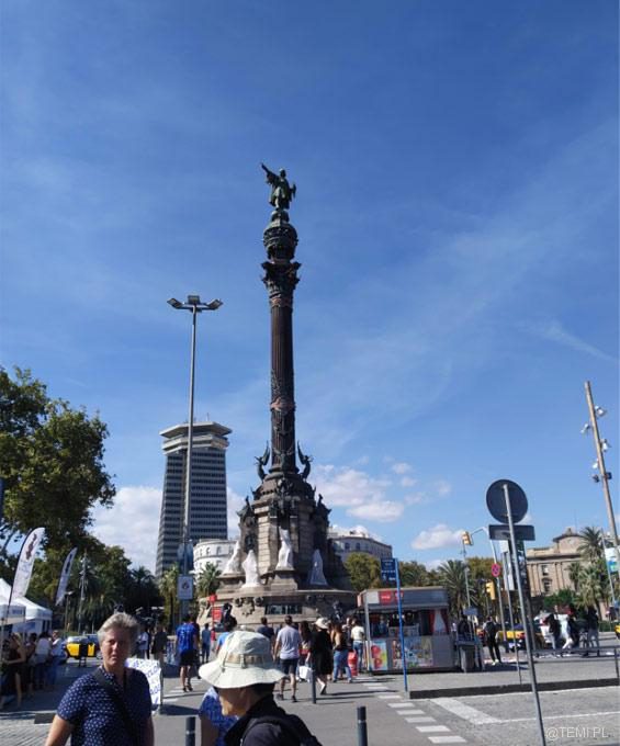 Każdy z nas dzierży w ręku pozyskany w recepcji campingu plan centrum miasta i ustalamy pierwszy punkt docelowy: kolumna Kolumba na końcu promenady przy porcie. Przy promenadzie na początku jeden obok drugiego same duże luksusowe sklepy. Skręcamy w boczną wąską uliczkę i od razu zmiana nastroju. Pierwsze skojarzenie to zanucenie piosenki „Uliczkę znam w Barcelonie”, a koledzy podchwytują. Knajpki, kafejki, puby, małe sklepiki z wystawionymi towarami, proste szyldy i graffiti na ścianach. Jest tu wilgotno, parno i lekki smrodek. Zaglądam do wnętrz sklepików i knajpek. W knajpkach wszyscy coś przekąszają. Jest tutaj taki zwyczaj, że kelnerzy i barmani do pierwszego zamówienia wina czy piwa bez pytania podają małą, a tak naprawdę drobną, jak to mówią, „na ząb” przekąskę. W jednym ze sklepików pytam o cenę koszulki w barwach „Barcelony” z napisem „Mesi”. Sprzedawca rzuca cenę 40 euro, odwracam się i wychodzę. Wybiega za mną i proponuje sprzedaż za 20 euro. Nie kupujemy.