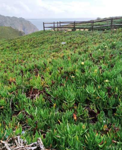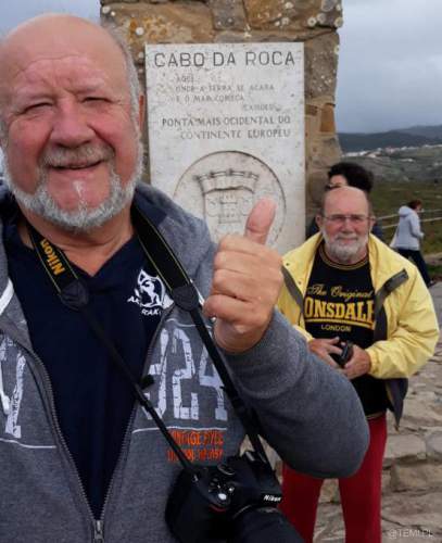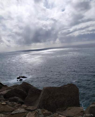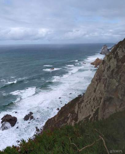 Zatrzymujemy się na poboczu jednej z kilku dróg dojazdowych, zatłoczonych autokarami, samochodami osobowymi. Jest też kilka kamperów. Wychodzi słońce i wieje ostry, przenikliwy, zimny wiatr. Po prawej na skarpie kościołek, a za nim w głębi nad urwiskiem latarnia morska. Musimy podejść kilkaset metrów asfaltowym chodnikiem przechodzącym w kamienny, żwirowy i na końcu w ziemne ścieżki pomiędzy głazami i kępami porostów. Na postumencie z krzyżem wyryta jest nazwa oraz długość i szerokość geograficzna tego punktu na Ziemi. Urwisko zabezpieczone jest płotem z drewnianych żerdzi. Patrząc w dół urwiska widzę rozbijające się o skały fale oceanu i robię zdjęcie najdalej wysuniętej skałki, teraz omywanej, a zapewne znikającej w czasie przyboju.