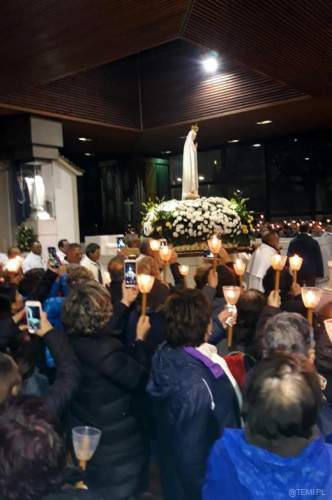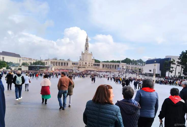 Wysiadające grupy łączą się przy wyjściu z parkingu w jeden potok ludzi z grupami napływającymi od strony miasta, zmierzający do Sanktuarium Fatimskiego, będącego ośrodkiem kultu maryjnego, głównego miejsca kultu religijnego Portugalii.
