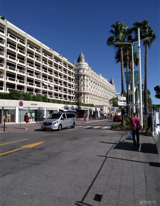 Do Cannes jedziemy pociągiem. Kursują co pół godziny. O tej porze (ok. godz. 10) w piętrowych wagonach nieliczni pasażerowie. Po wyjściu z dworca kierujemy się w stronę morza. Dwie przecznice i wychodzimy na marinę jachtową. Ulice powoli zapełniają się turystami, w większości w grupach. W marinie też większość to jachty motorowe. W przycumowanych do nabrzeża trwa sprzątanie i uzupełnianie zaopatrzenia. Lustrujemy wszystkie – co jeden to ładniejszy. Żal serce ściska, że nie dorobiliśmy się w PRL-u i III RP czegoś takiego. Nawet nie stać nas na wynajem. Robimy wypad z przystani na rozpoczynający się słynny bulwar. Mijamy planszę z napisem „Boulevard” i zdjęciem z 1900 roku, a następnie po jednej stronie Casino (nie wpuszczają nas z powodu krótkich spodni), a po drugiej Notre Dame Du Bon Voyage. Przyklejony do Casino jest Pałac Festiwalowo – Kongresowy. Kręcimy się wokoło odczytując odciski dłoni słynnych gwiazd filmowych. Za nim mini lunapark dla dzieci, kioski i rozciągnięty czerwony dywan-chodnik. Prowadzi on wzdłuż ogrodzenia budowlanego – trafiliśmy na remont całego bulwaru. Stąpamy więc po nim, przyglądając się rozwieszonym na ogrodzeniu fotkom aktorek, aktorom i scenom ze znanych filmów. Po drugiej stronie hotele, apartamentowce. Coraz więcej mijanych turystów i słońce bardziej przypieka. Z wywieszonymi językami dochodzimy do końca ogrodzenia i zejścia na plażę zastawioną leżakami, stolikami z parasolami.