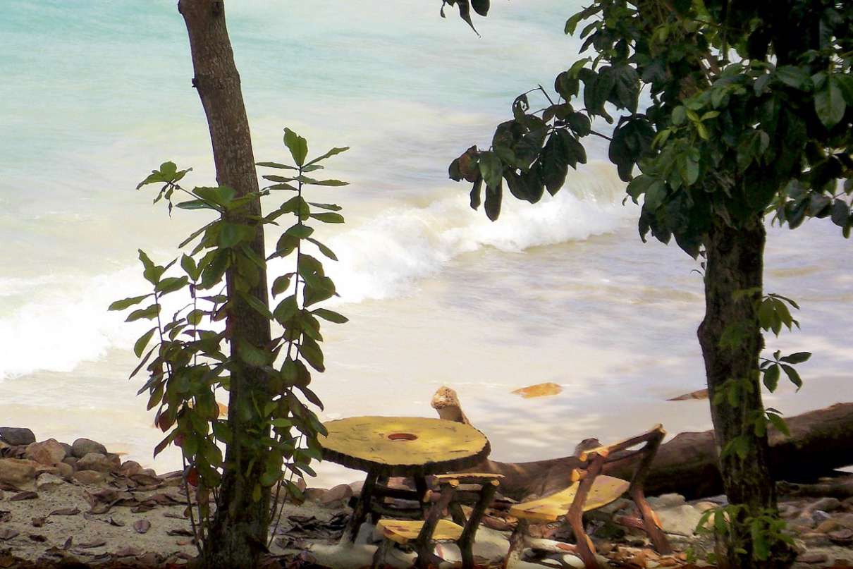 Kiler pływał z maską, toteż spotkaliśmy się przy Romantycznej Plaży. Po spędzeniu paru godzin w wodzie byliśmy głodni. Wzdłuż plaży rosły palmy kokosowe, a że w nocy był wiatr, na brzegu leżało wiele młodych zielonych kokosów. Idealnych do picia, ale nie mieliśmy czym ich otworzyć – trzeba było rozbijać je o głazy. Jeśli jednak pije się mleczko kokosowe z pękniętego w kilku miejscach orzecha, po chwili człowiek cały jest zlany słodkim, lepkim, kokosowym sokiem. Musieliśmy znowu wejść do wody, żeby się wykąpać. Rozsiedliśmy się w miniaturowej skalnej zatoczce, przypominającej naturalne jacuzzi, napełniane co chwila przez fale świeżą wodą. O parę metrów od nas na płyciźnie uwijały się barwne ryby, po gładkich pniach palm pomykały pasiaste wiewiórki. Dla uatrakcyjnienia pejzażu, z lasu przy plaży wyszły wielkie jaszczurki – warany monitory. Przypominały prehistoryczne jaszczury i grzały się na piasku w popołudniowym słońcu.
