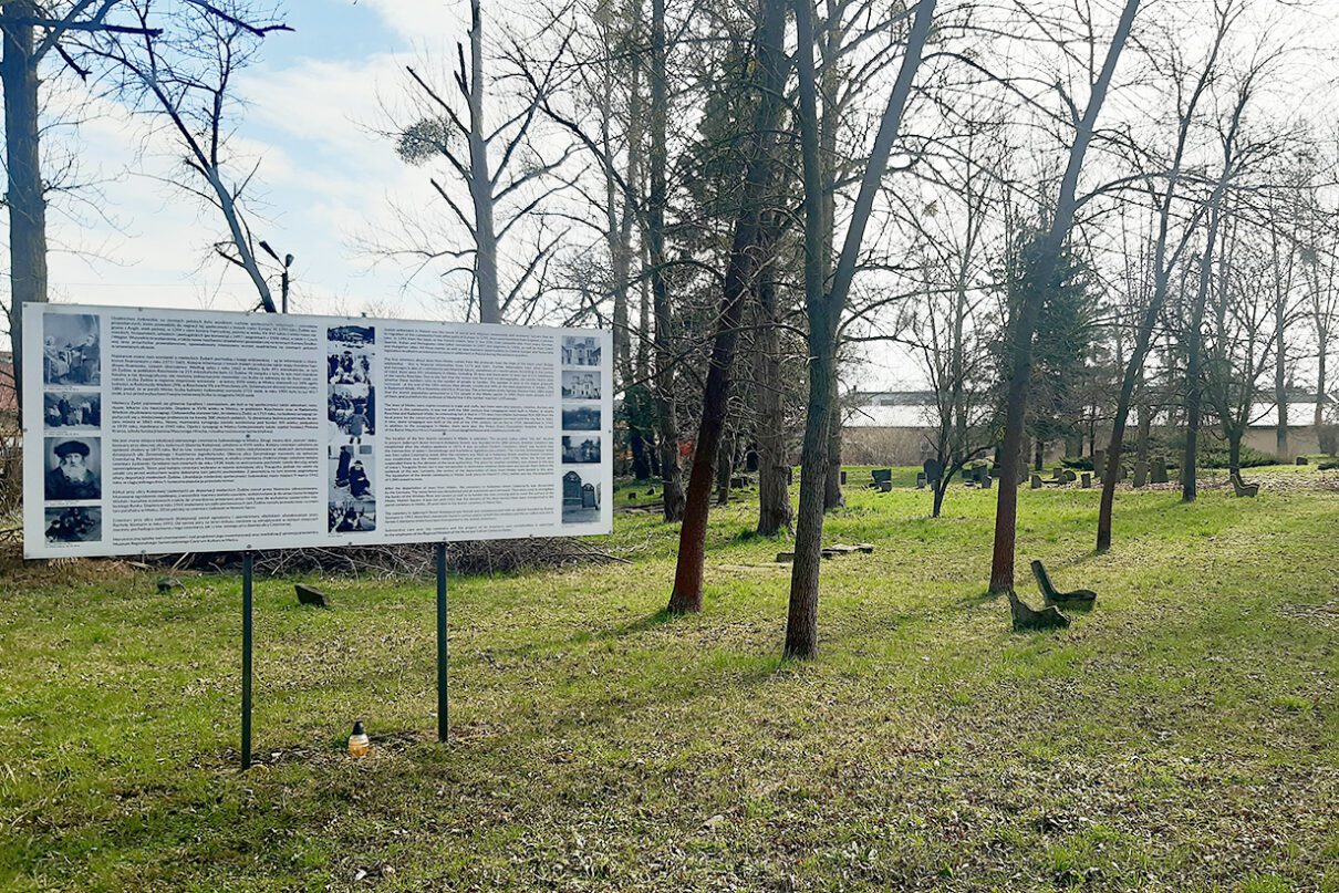 Po drugiej stronie znajduje się kirkut – pamiątka po sporej żydowskiej społeczności Mielca, wymordowanej lub wywiezionej przez hitlerowców do różnych obozów zagłady (klucz do pobrania w Jaderówce).