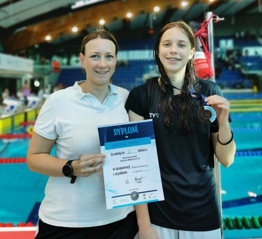 Z dwoma medalami: srebrnym i brązowym powróciła z rozgrywanych w Lublinie Mistrzostw Polski Juniorów U-15 pływaczka UKS Sokół-Mościce Tarnów, Maria Łakoma. Podopieczna trenerki Urszuli Mróz wywalczyła je na dystansach: 400 i 800 metrów stylem dowolnym.