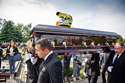 Uroczystości pogrzebowe rozpoczęła msza w kościele w Mościcach, podczas której zmarłego brata wzruszająco wspominała siostra Martyna. Po nabożeństwie kondukt pogrzebowy odprowadził zmarłego tragicznie żużlowca na mościcki cmentarz. Tam ceremonii złożenia trumny do grobowca towarzyszył, jak nakazuje tradycja, warkot żużlowego motocykla…