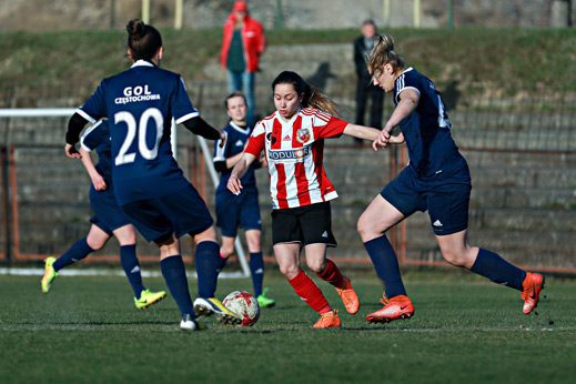 Gospodynie dobrze zaczęły i od początku naciskały rywalki, ale później rywalizacja wyrównała się. Obydwie drużyny stworzyły sobie sporo okazji bramkowych, tyle że piłka do siatki nie chciała wpadać (z jednym wyjątkiem, ale po akcji Gabrieli Krawczyk i Katarzyny Białoszewskiej sędzia dopatrzyła się spalonego). W efekcie po raz drugi w tym sezonie drużyny podzieliły się punktami, bo także ich wrześniowe spotkanie zakończyło się remisem 1:1.
