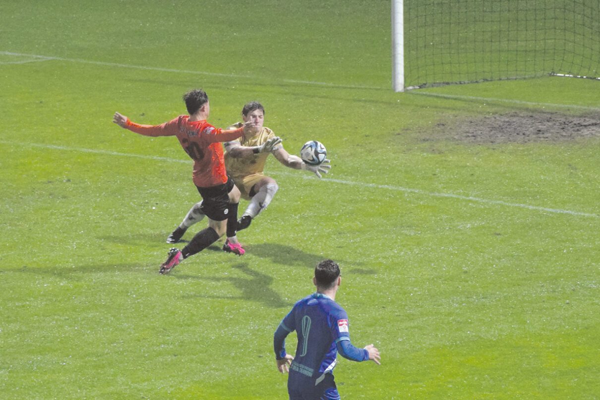 Sobotni mecz lepiej rozpoczął się dla gospodarzy, którzy objęli prowadzenie w 10. minucie po trafieniu Dominika Pisarka. Radość miejscowych kibiców nie trwała jednak zbyt długo, bo w 22. minucie Artur Biały doprowadził do wyrównania. Unia dostała wiatru w żagle i z czasem radziła sobie coraz śmielej, tyle że pod koniec pierwszej połowy znalazła się w bardzo trudnym położeniu, kiedy czerwoną kartką został ukarany Henry Uzoigwe.